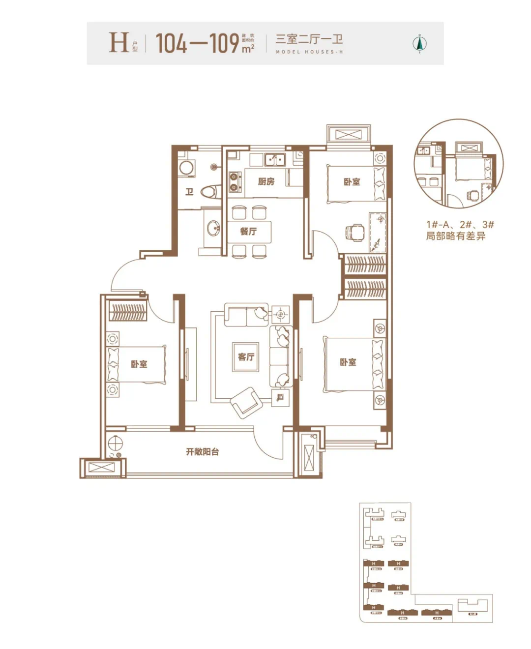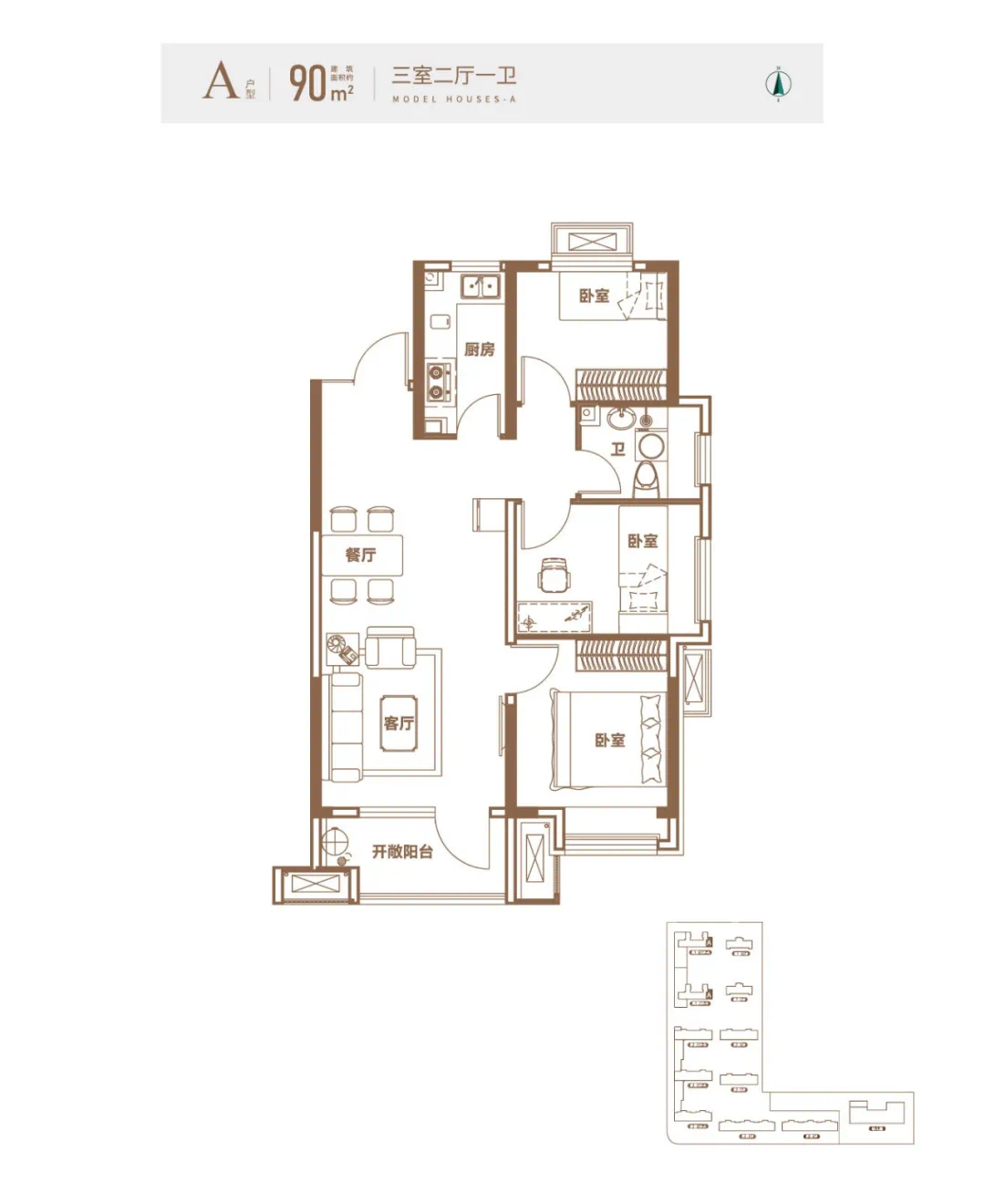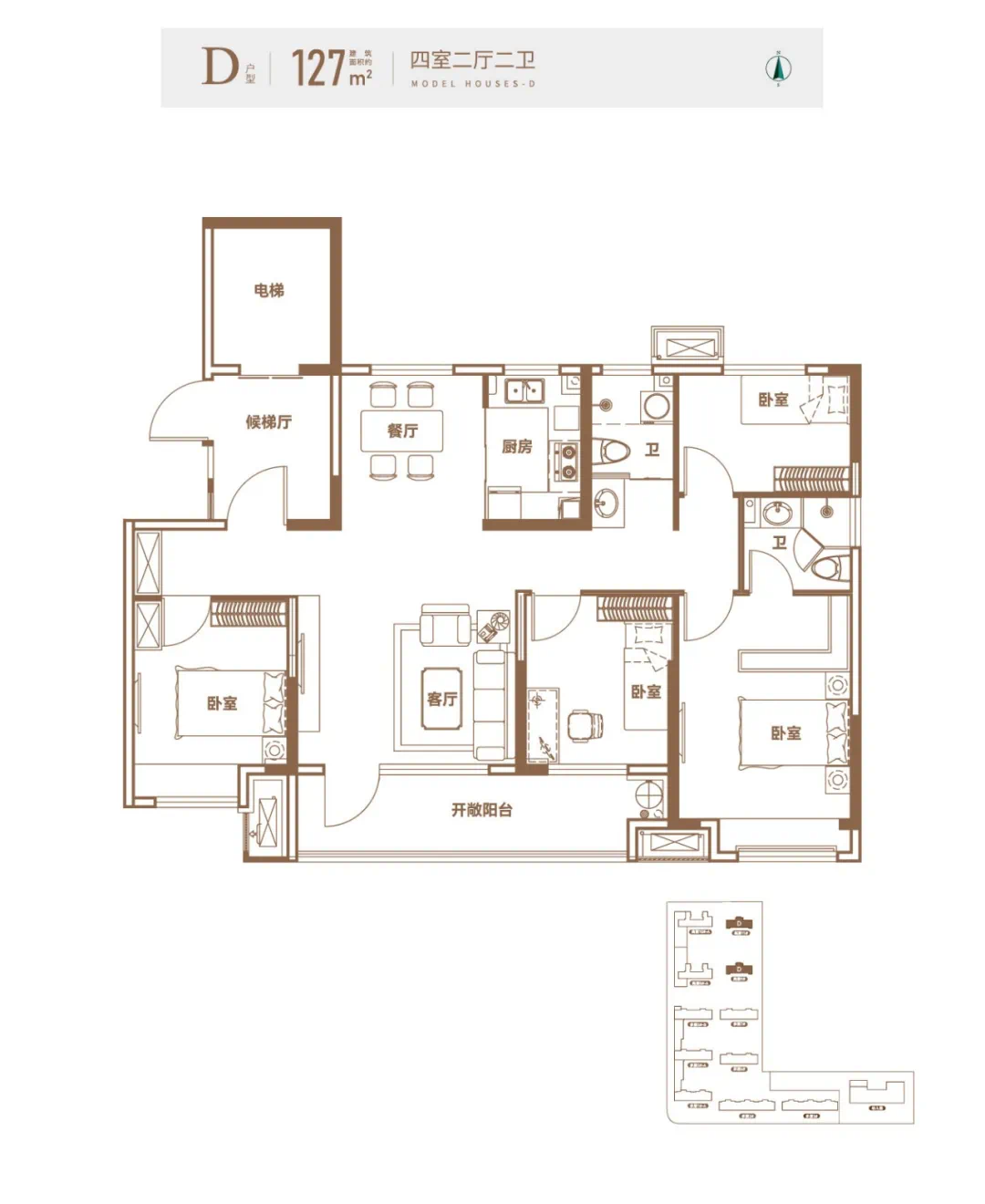 建筑面积约90-127㎡舒居三室、阔绰四室