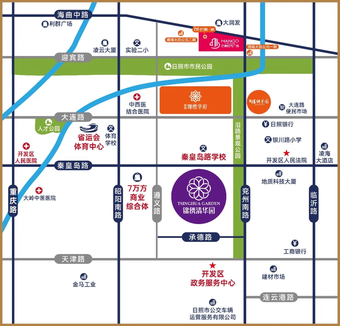 【锦绣清华园】 省体中心旁|秦皇岛路学校对面|品质洋房住区 是德瑞地产2021年在经开区 升级力作。德瑞地产,深耕日照12载 站位客户需求,精研产品 布局经开区:相继开发了 锦绣兰园 锦绣华府、锦绣学府锦绣系优质项目 德瑞地产将以更优产品力 “质”敬港城,打造百姓宜居好房子 2022年省运会主会场奎