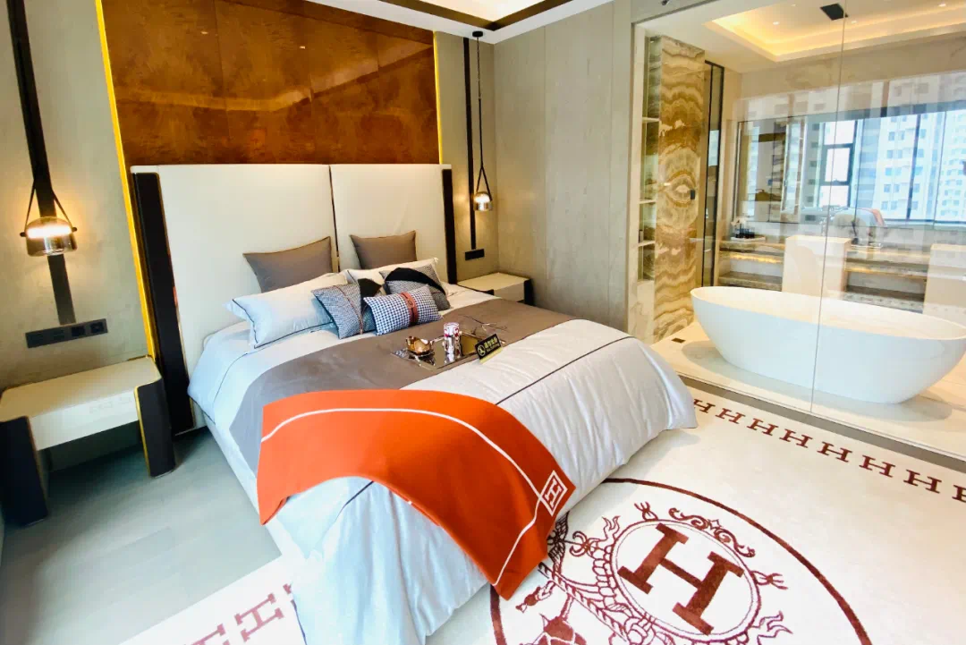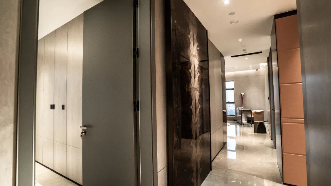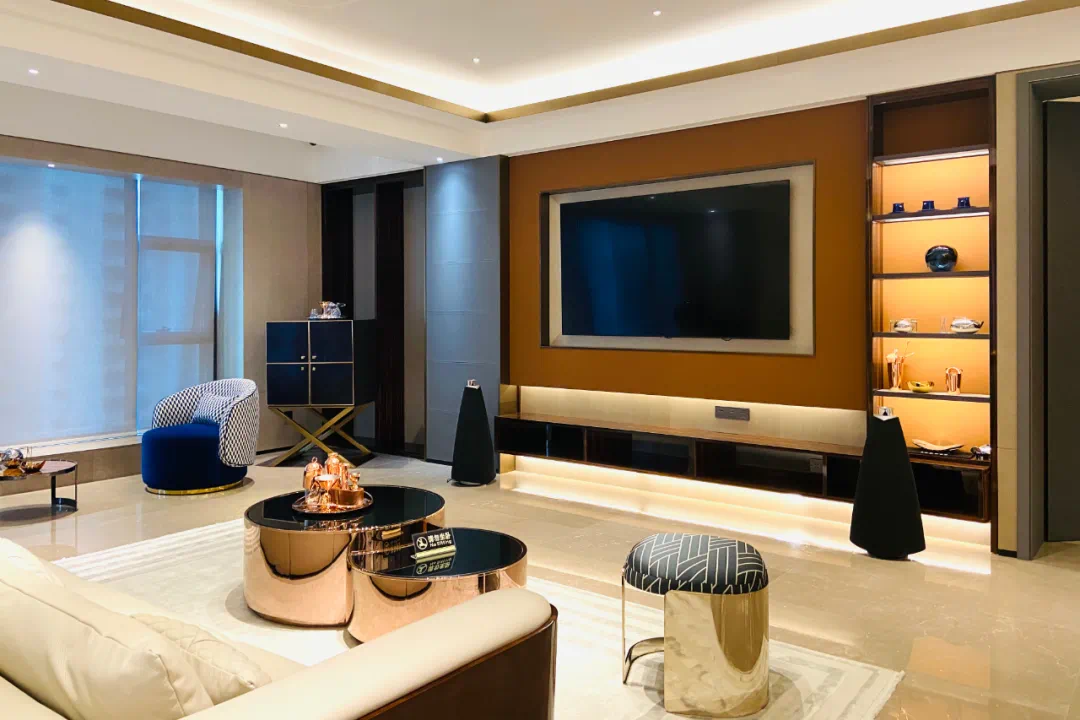 塔尖豪宅由德国设计团队和香港设计师联合设计,打造集聚摩登、轻奢于一体的美学空间,从空间格局的布置,到活动动线的设计,从功能的考量,到细节的斟酌无一不尽其所能,切实考虑客户居住需要,以奢华而优雅的风格打造。